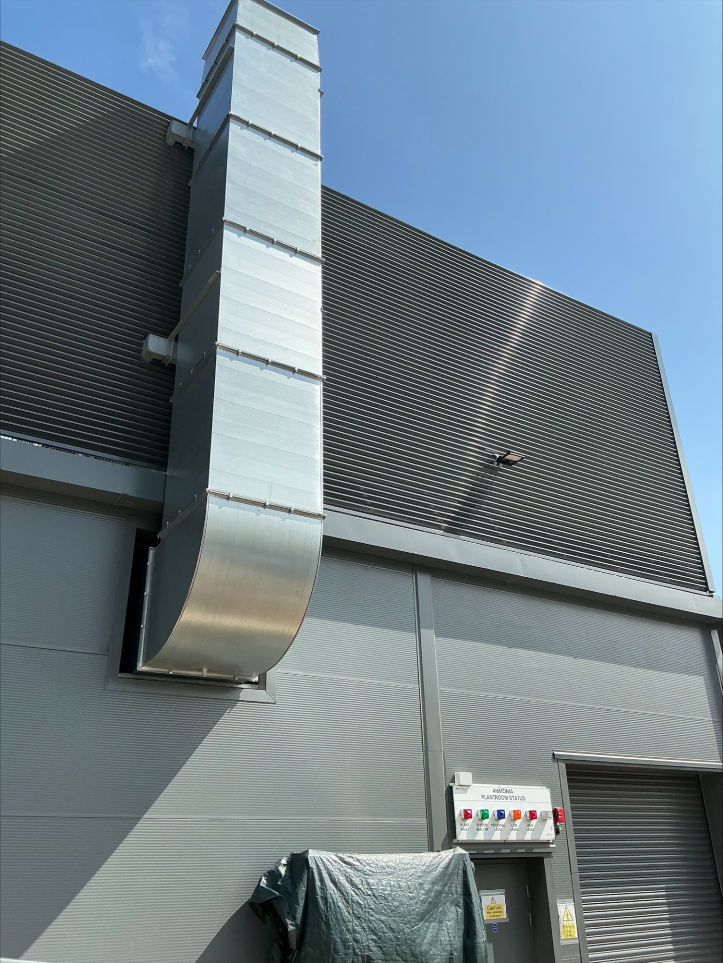 - Functional & Aesthetic Integration: The plant room’s walls will be colour-matched to blend with the existing factory, and the structure will include high-level louvres for ventilation and a CAT ladder roof access system.
