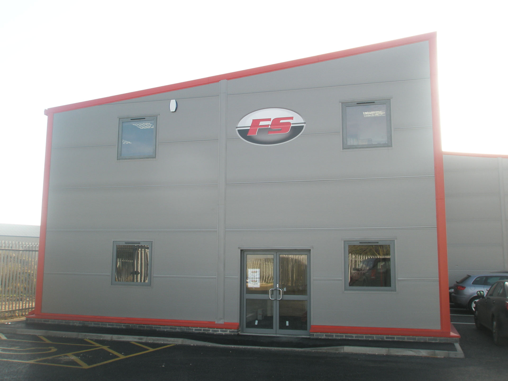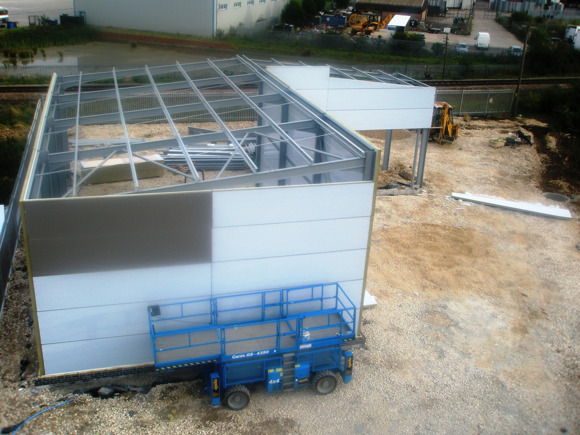 Design and construction of a steel portal frame building, purpose-built to house a combined warehouse and two-storey office block.