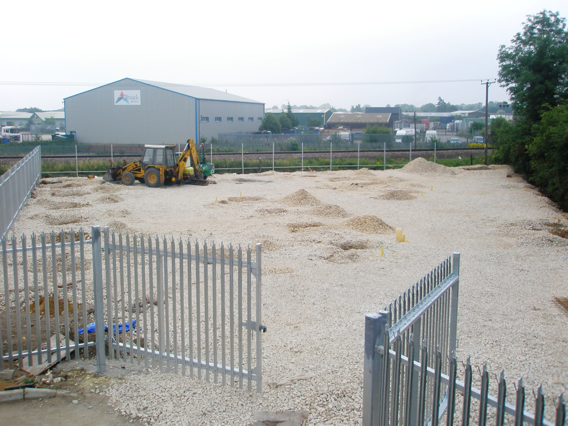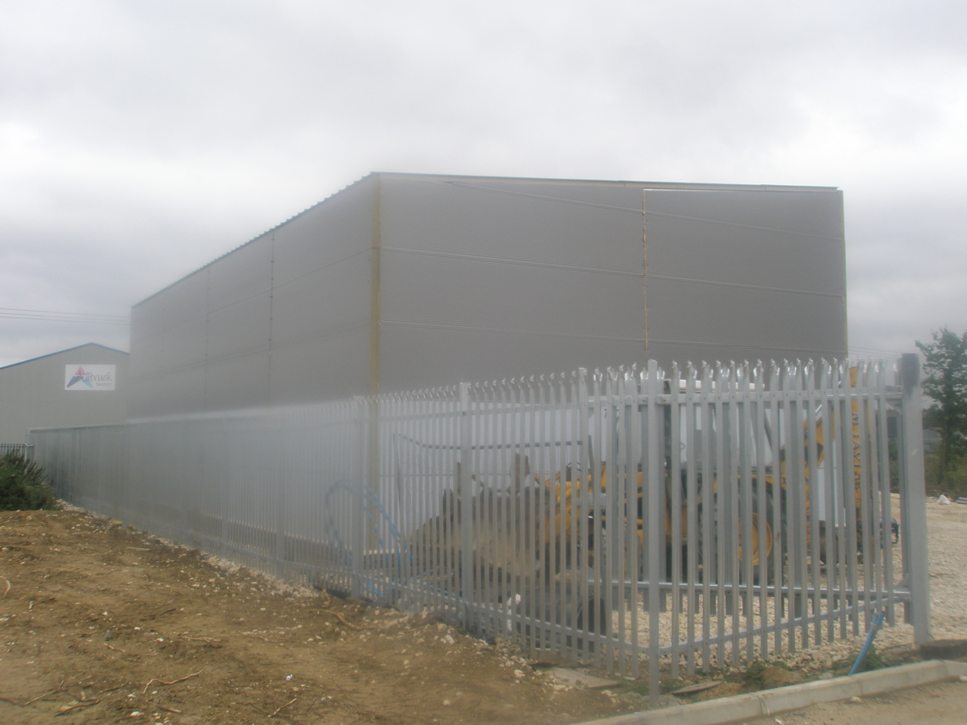 Perimeter fencing and secure entrance gates integrated to match the industrial estate setting.
