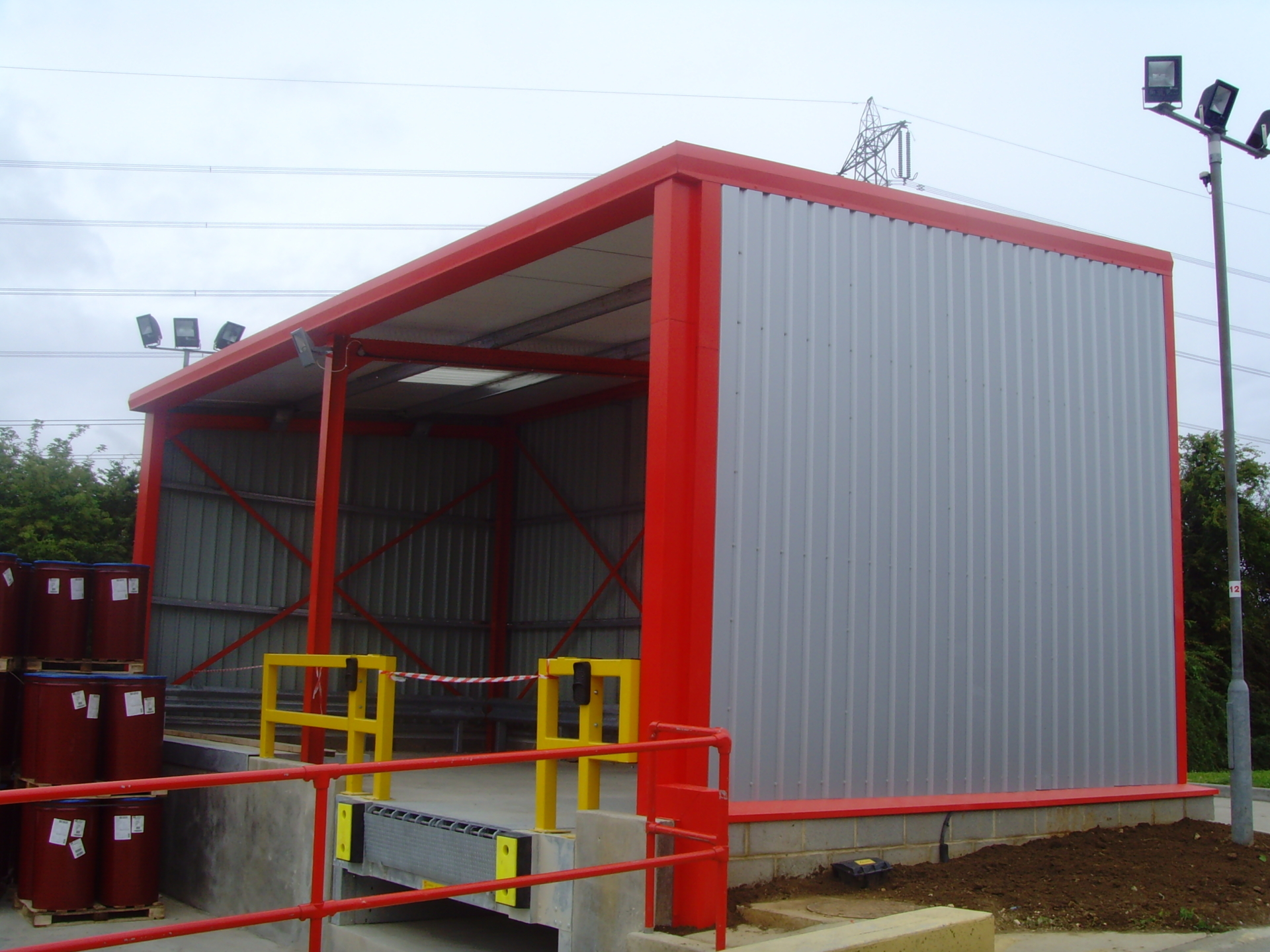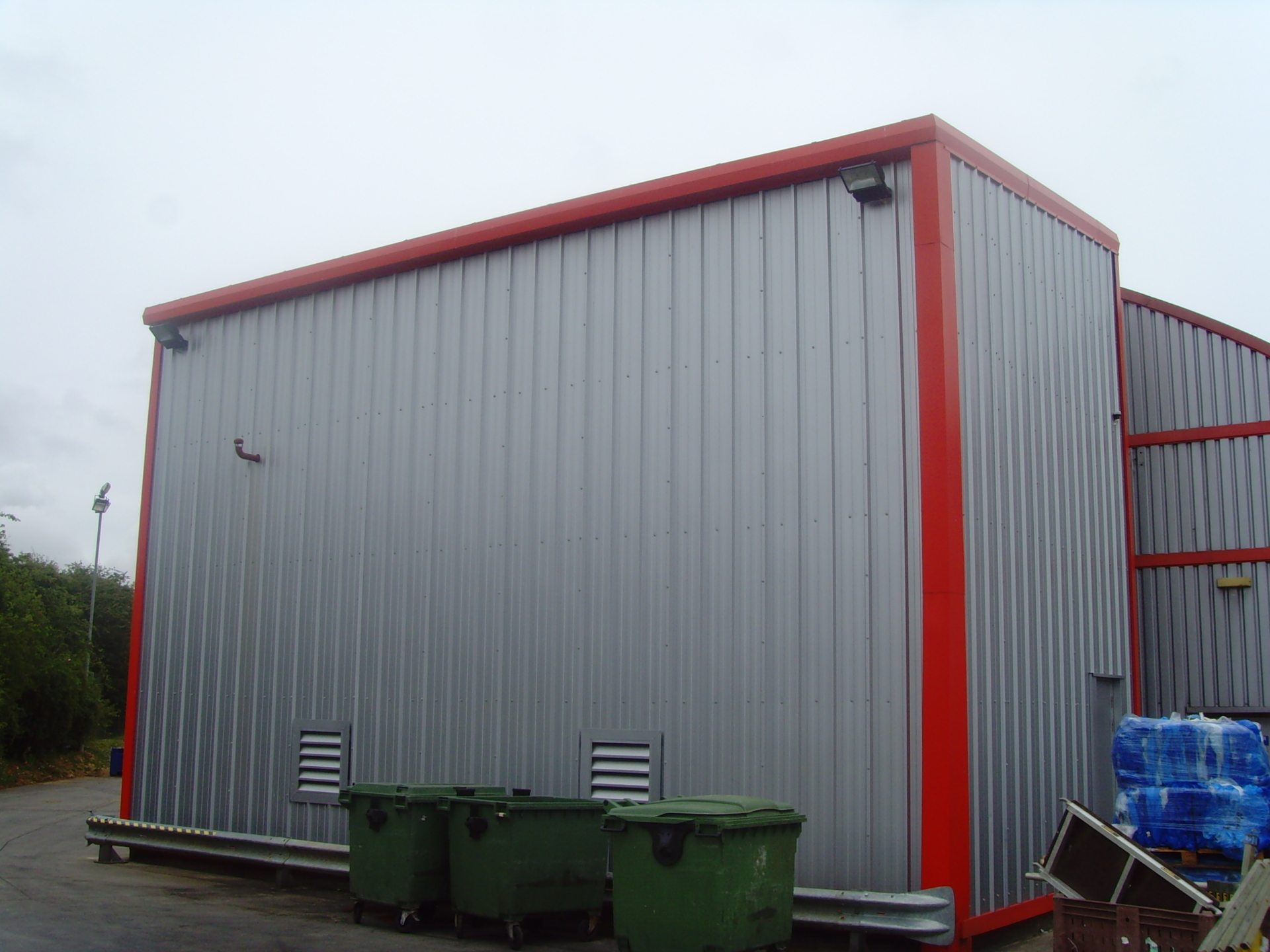 - Red primed and painted columns with full galvanised connections and profiled cladding