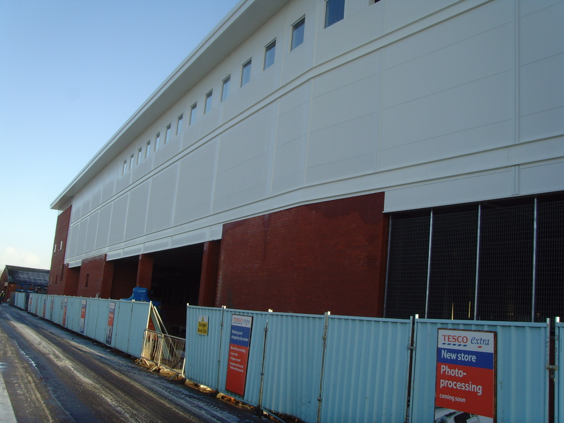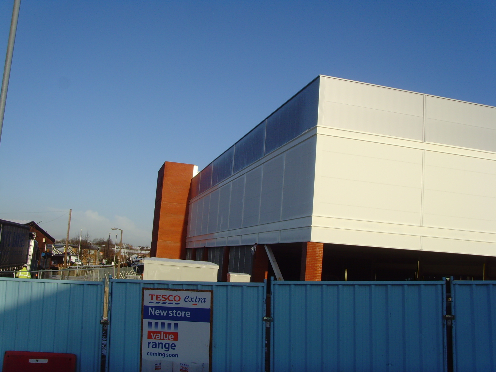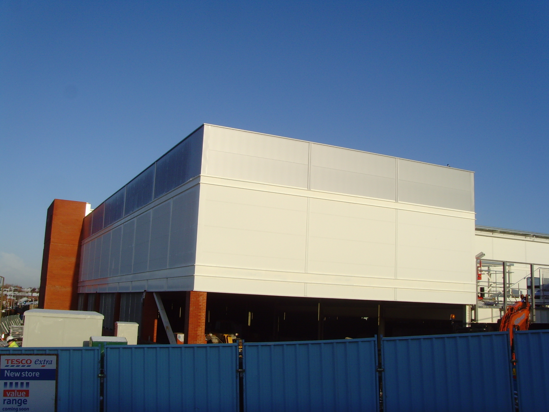 Ambrey Baker was engaged as the specialist cladding contractor for the external envelope of a new-build Tesco Extra in Oldham. The project involved delivering a high specification insulated panel system to suit Tesco’s corporate design and performance standards.